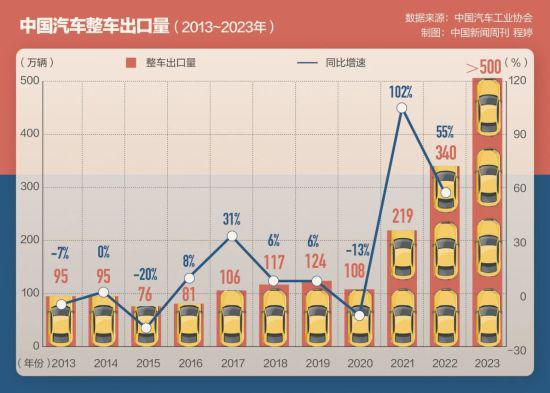 而这只是中国汽车出口爆发的一个缩影。在中国国际经济交流中心2023年12月13日举行的2023~2024中国经济年会上,中央财办分管日常工作的副主任、中央农办主任韩文秀介绍,2023年,中国汽车出口将超过500万辆,创下新的历史纪录。