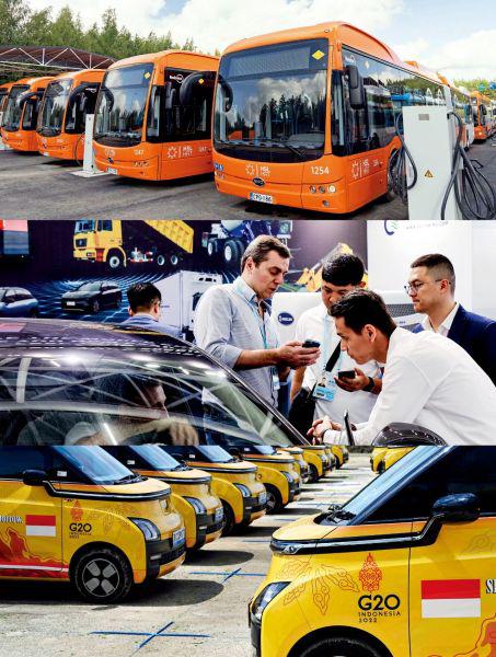 下图:2022年11月13日,印度尼西亚巴厘岛,300辆上汽通用五菱新能源车作为G20峰会官方用车为各代表团和组委会提供日常通勤服务。图/新华