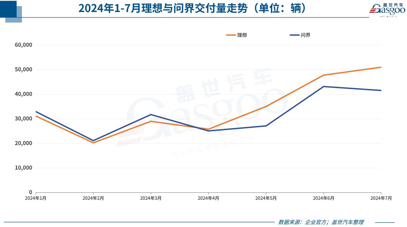 具体来看,时隔7个月,理想月交付量再次突破5万辆,达到51,000辆,创历史新高,较去年同期增长49.4%。今年前7月,理想累计交付量已近24万辆。