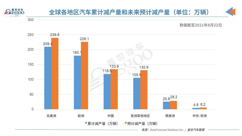 根据AFS以往发布的数据,截至8月8日,全球汽车累计减产量为585.3万辆;截至8月15日,全球汽车累计减产量为596万辆,比上一期增加了10.7万辆。AFS预计,未来全球汽车减产量将有可能攀升至765.1万辆。