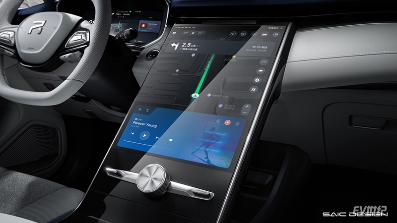 根据此前官方提供的内饰效果图,MARVEL R的内饰在造型上使用了IP环抱式设计风格。整体看起来比较简洁,两块大屏极为惹眼,隐藏式的空调出风口和金属质感的旋钮按键看起来有一些科技感。