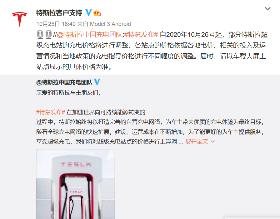 特斯拉方面对此次调整超级充电站充电价格一事表示,调整不是为了盈利,而是保证特斯拉自营充电网络的可持续运营。根据调价策略,调整过后将会出现不同地区的特斯拉超级充电站充电价格不同的情况,具体各地充电价格将以车载大屏上站点显示的具体价格为准。