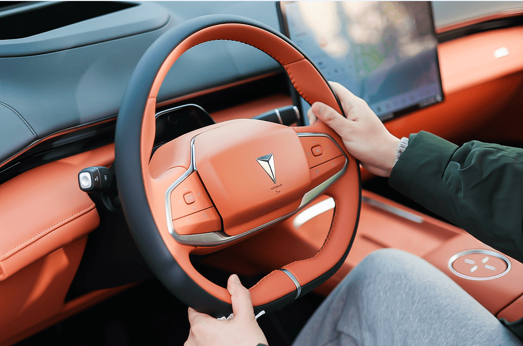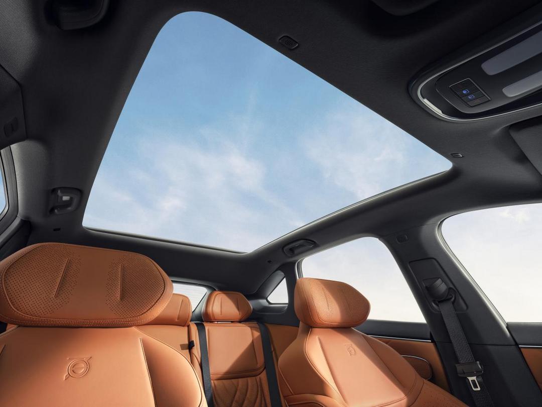 从顶面看,整车仿佛是一艘真正的游艇,形体饱满有力,无线充电区域像游艇甲板。舱内看,取代传统仪表盘的AR-HUD,是内饰中的标志性设计之一。该车配备全景天幕、向日葵中控屏、智能交互灯——搭载348颗灯珠排列在传统雾灯区,形成独特的灯语交互平台,可实现行人礼让、行车状态提醒、特殊场景动画等灯语效果。